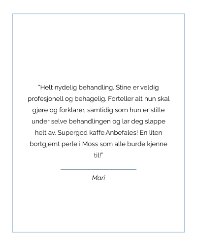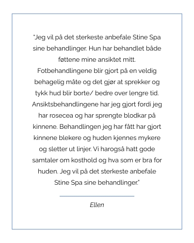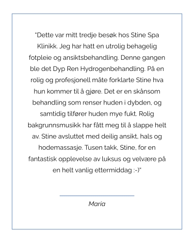 Over 115 anmeldelser på Google gjenspeiler kvaliteten og tryggheten som preger Stine Spa.