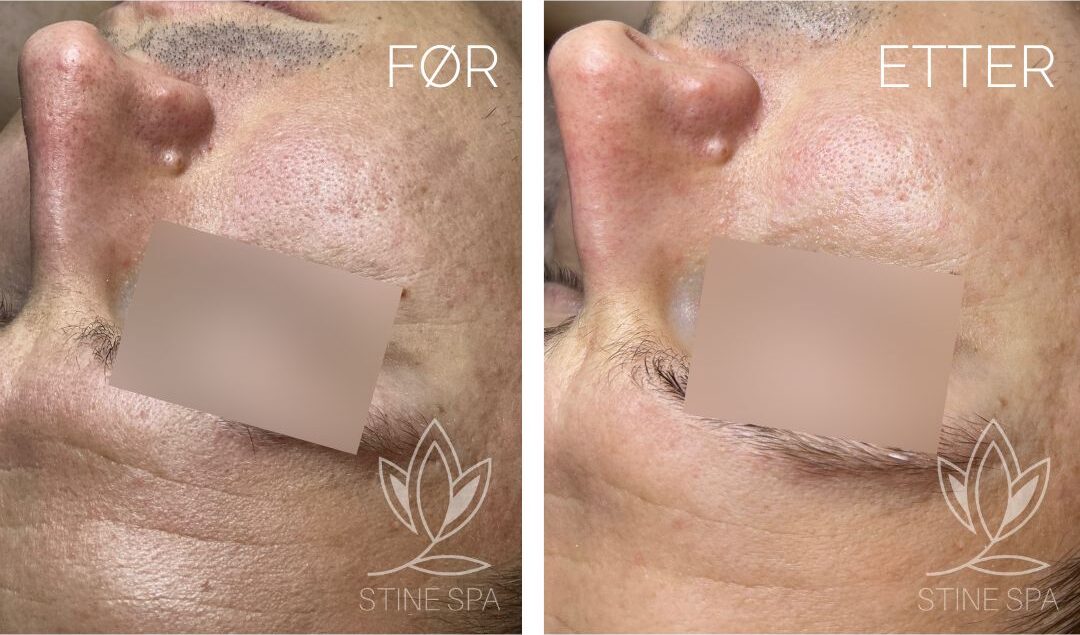 ➡️ Etter én behandling: klarere hud, redusert blankhet